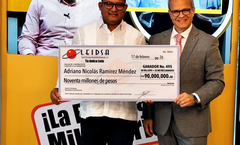 LEIDSA entrega 90 millones al millonario 495 del Loto