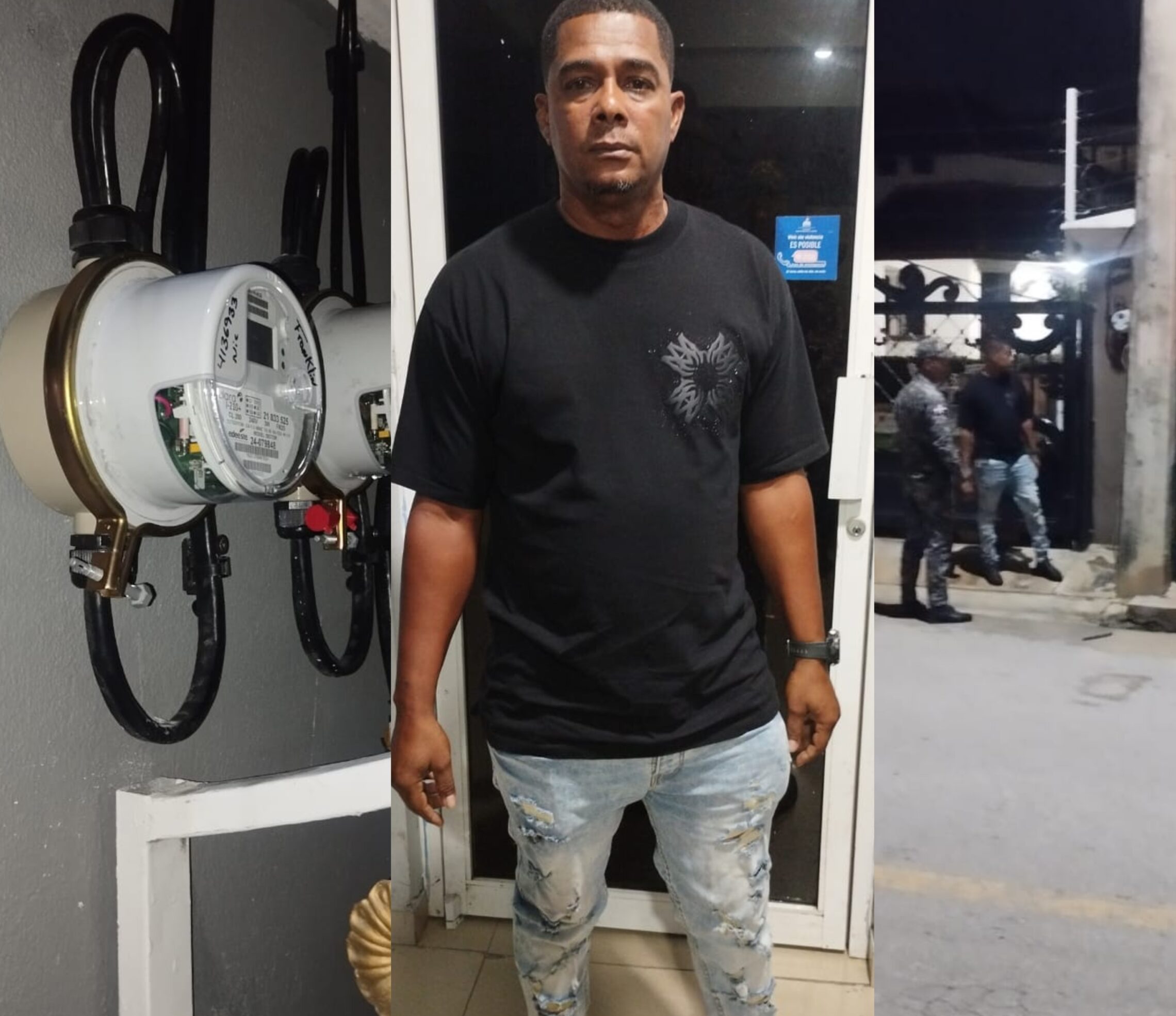 El detenido fue identificado como Wimiton Solano Morillo, quien al momento de su detención fue sorprendido cortando el aro de seguridad de un medidor y cortado el sello ping en el borde de la verga.