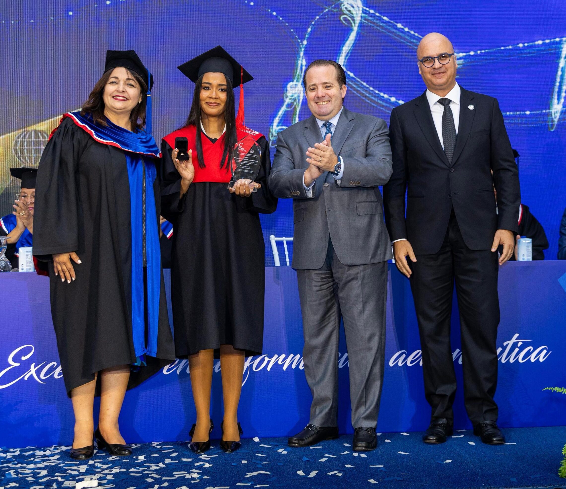 En representación de los estudiantes habló Astrid Massiel Agramonte Almonte, estudiante de honor Summa Cum Laude con el mayor índice académico de 3.98, seguida de Joan Silvio Encarnación D’Oleo, con 3.97 y Ana Carolina Castellanos Suriel, con 3.91.