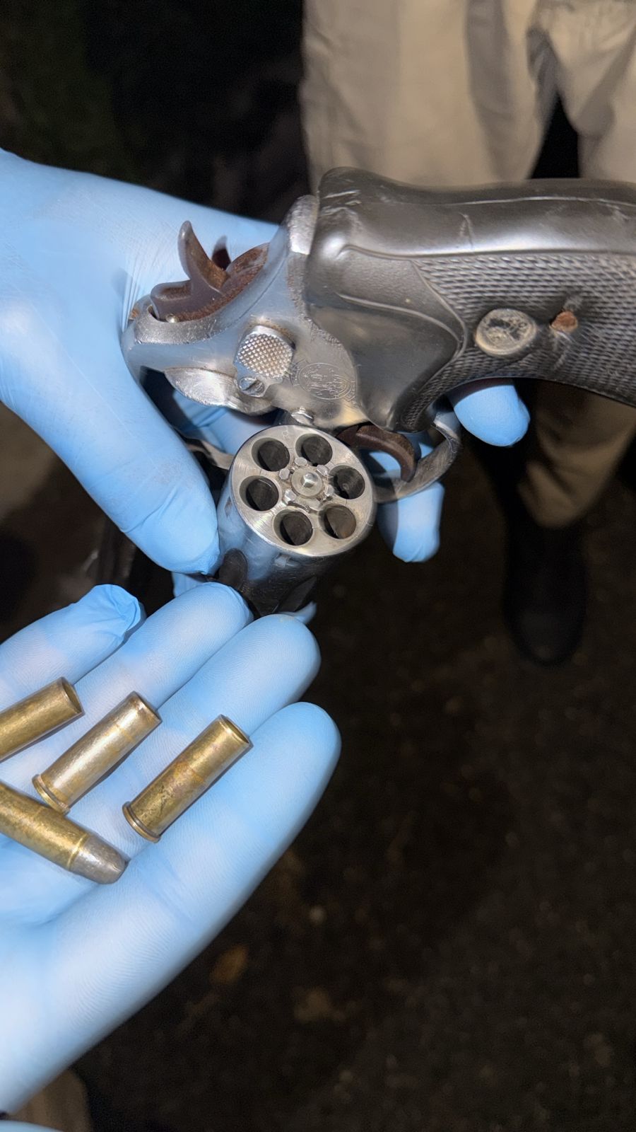 La Policía Científica colectó como evidencia un revólver marca Smith & Wesson, calibre .357, con numeración limada, conteniendo casquillos en su interior.