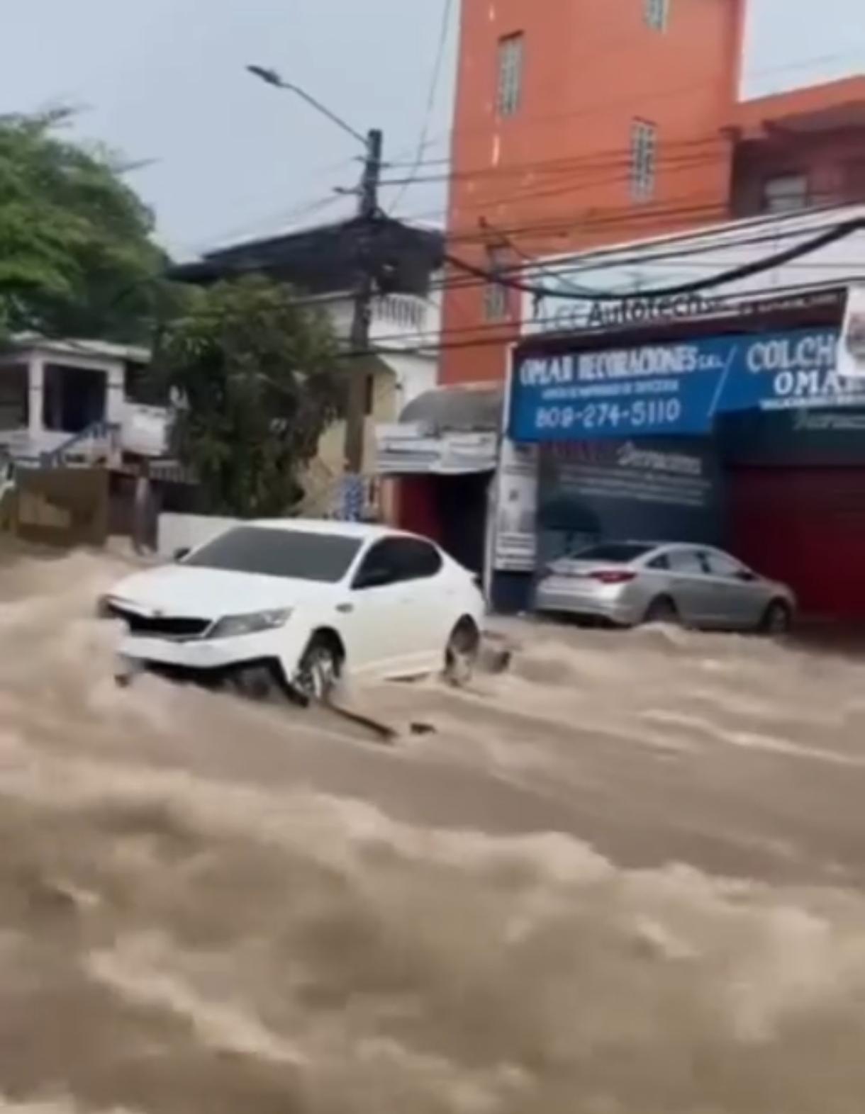 Santo Domingo Oeste.– Las intensas lluvias registradas la mañana de este miércoles provocaron inundaciones en la avenida Isabel Aguiar, debido a la fuerte acumulación de agua en la zona.