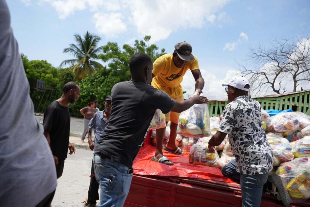 La jornada de solidaridad tuvo lugar en los sectores Los Tabiques, El Caño y El Medio (calle segunda), donde la fundación distribuyó alimentos a las familias que enfrentan dificultades tras los efectos de las precipitaciones.