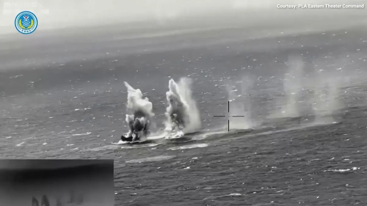 Un buque chino dispara durante unas maniobras al este de Taiwán, en esta captura de pantalla tomada de un vídeo publicado por el Mando del Teatro Oriental del Ejército Popular de Liberación (EPL) chino el 29 de diciembre de 2025.