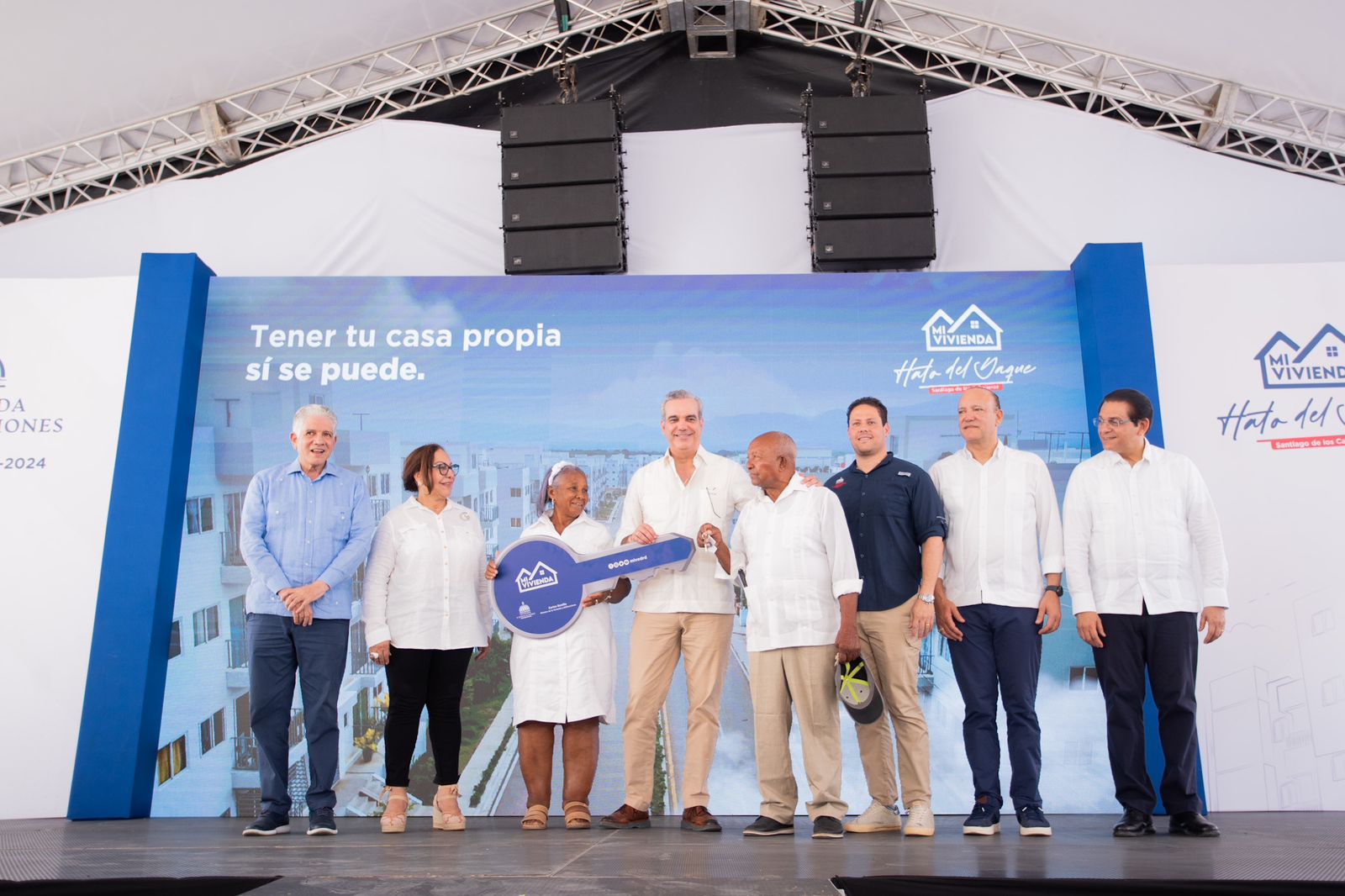 Santiago. – El Presidente de la República, Luis Abinader, y el Ministro de Vivienda y Edificaciones (MIVED), Carlos Bonilla, hicieron entrega este sábado de 250 nuevos apartamentos en el Plan Mi Vivienda Hato del Yaque, en la provincia Santiago, beneficiando a igual número de familias que, a partir de hoy, pasan a ser las propietarias de sus hogares.