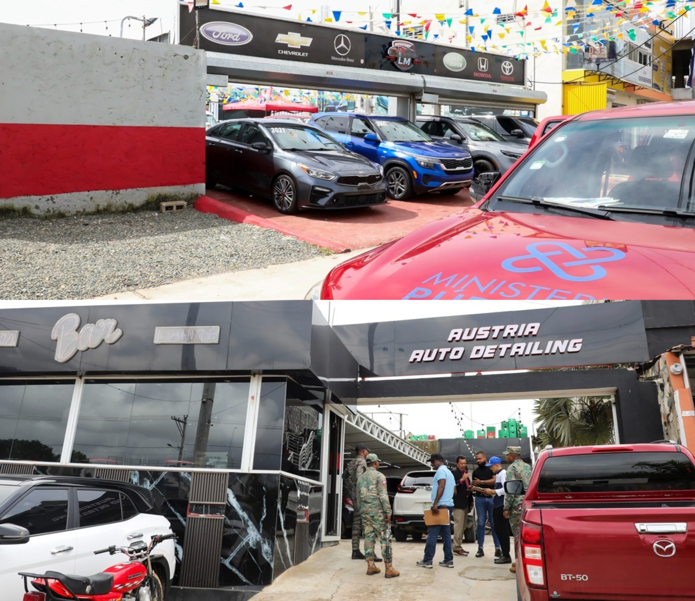 Entre los negocios intervenidos por las brigadas de la Pgase y Edeeste figuran MM Auto Adorno, Austria Auto Detailing, Fenatrano R-13, Tony Acosta Auto, Mini Market Blimark, Expreso Shang Hai y Pica Pollo Hambre II.