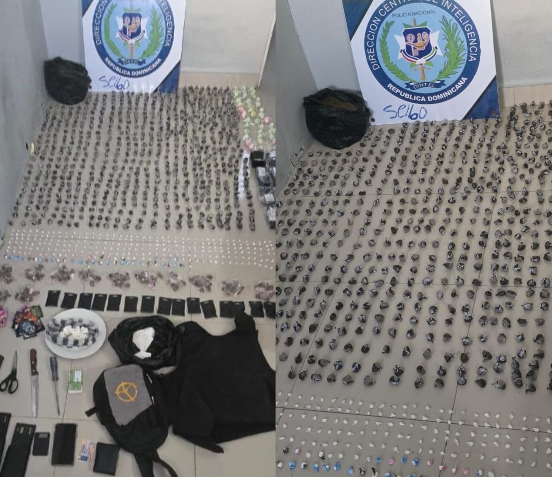 En la residencia se ocuparon una paca de vegetal presumiblemente marihuana con un peso de 2,248 gramos, además de 650 porciones de cocaína y marihuana con un peso total de 1,299 gramos, cuatro fundas con 25 porciones de crack (105 gramos), un chaleco antibalas, tres balanzas, tres cuchillos, una tijera, un destornillador, tres tarjetas bancarias, una licencia de conducir y RD$7,240 en efectivo.