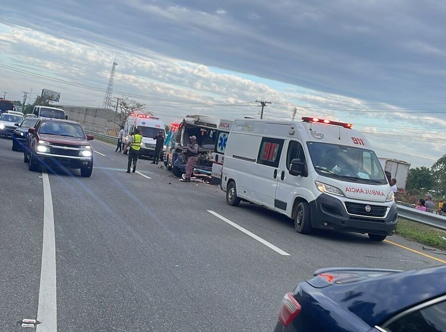 Guayacanes.– El 911 informó que brinda asistencia a un accidente de tránsito entre un camión, un carro y un autobús, en un hecho ocurrido en la Autovía del Este, municipio Guayacanes.