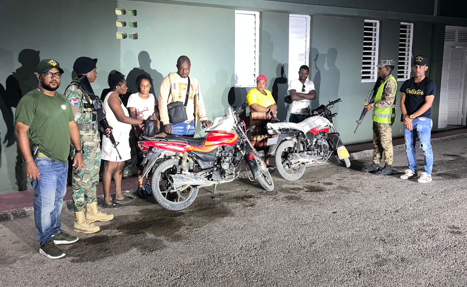 En el municipio de Comendador, Elías Piña , miembros del ERD detuvieron a Michael García, Luciano De Los Santos y Julio De los Santos Encarnación , quienes se desplazaban en 5 motocicletas con 11 nacionales haitianos, junto a otros conductores que lograron escapar dejando abandonados sus respectivos vehículos.