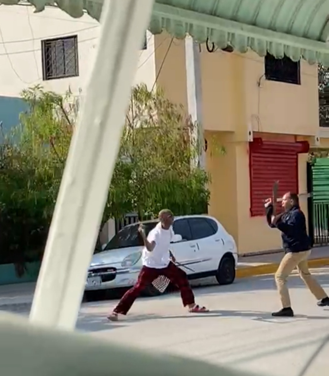 Momento en que un hermano le propinó varios machetazos a su hermano en distintas partes del cuerpo por una presunta herencia en un hecho ocurrido en el sector de Villa Flores del municipio de San Juan de la Maguana.